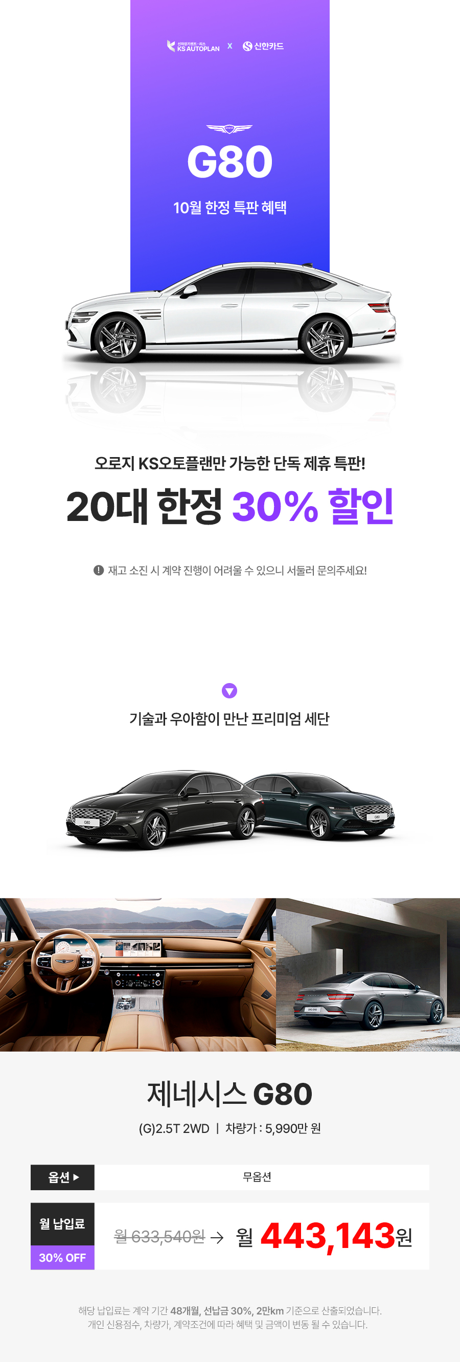 [제네시스 G80] KS오토플랜 X 신한카드 제휴 특판