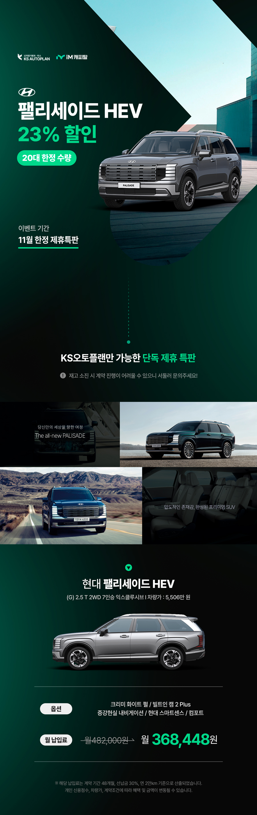 [현대 팰리세이드HEV] KS오토플랜 X iM캐피탈 제휴 특판