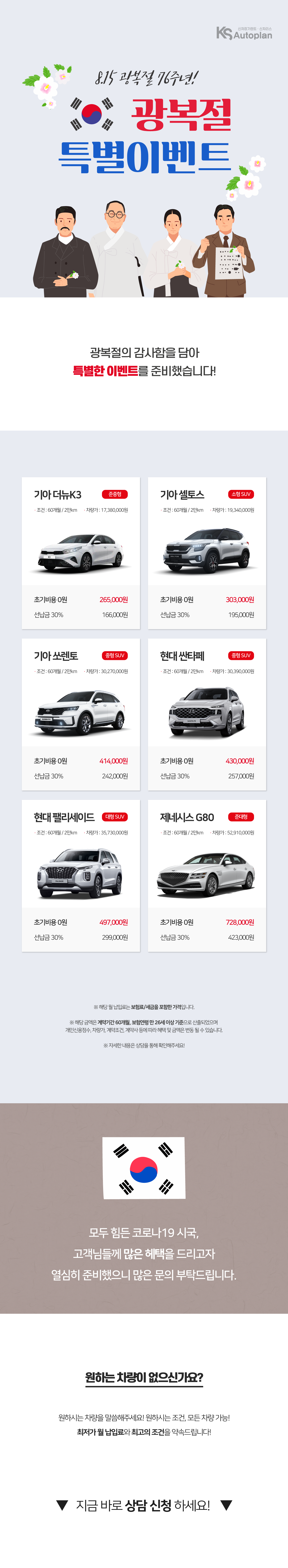 • 연락처: 070-5222-8477 / jiho.c@ksautoplan.com
