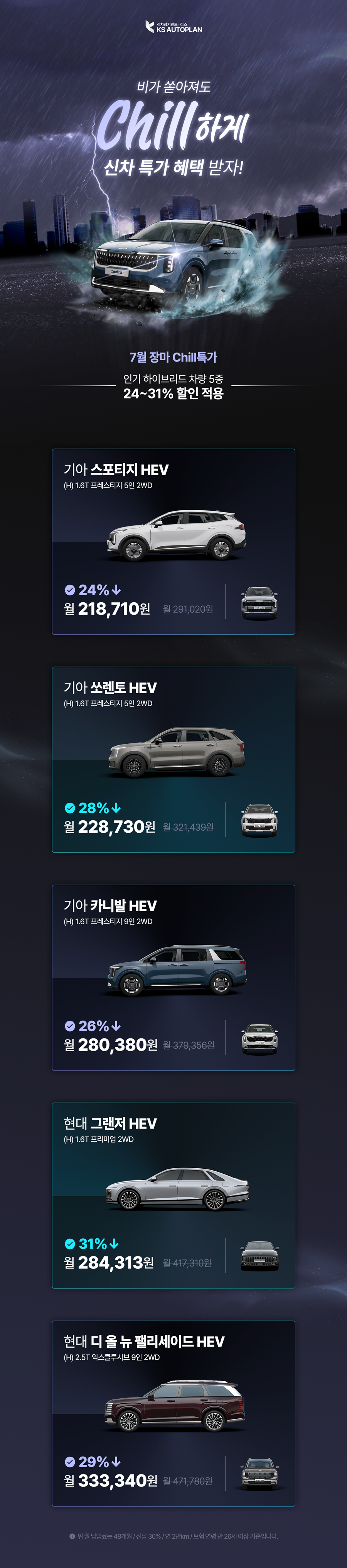 [칠특가] 비처럼 쏟아지는 하이브리드 특가차량!