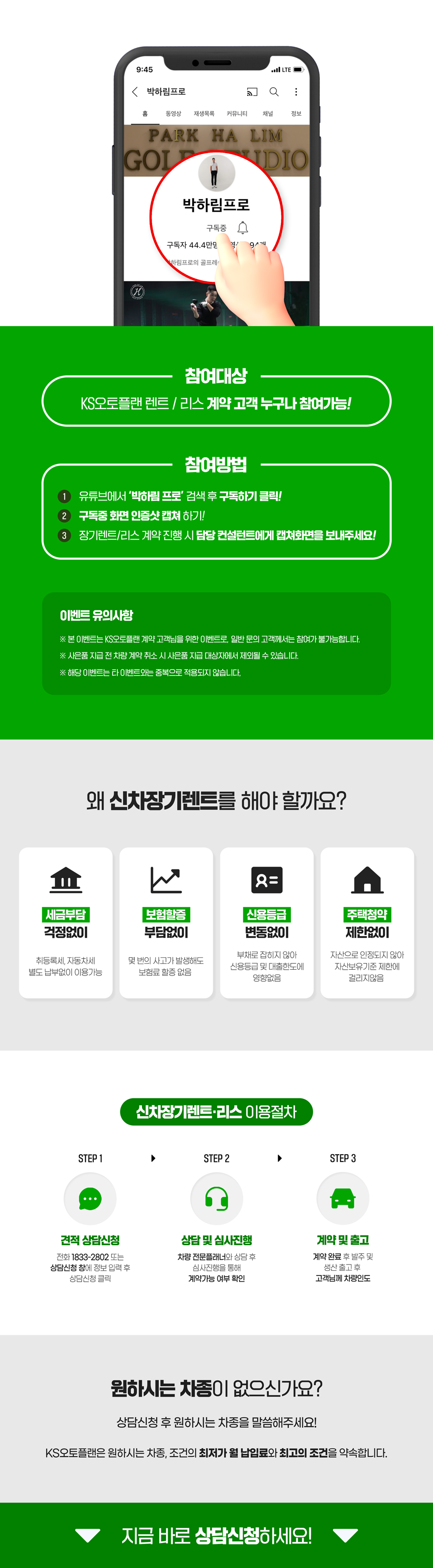 | 장기렌터카, 리스, 할부 등 견적상담 | 이름, 성별, 휴대전화번호, 생년월일, 주소, 운전면허번호, 이메일주소 | 서비스 공급 완료 및 계약 완료시로부터 5년 |