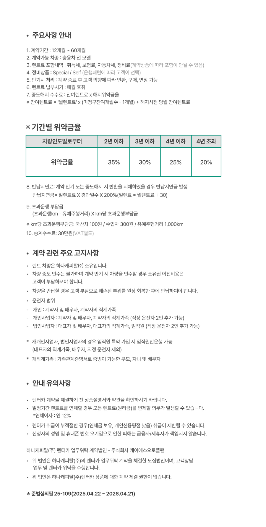 | 렌터카 및 리스 할부 계약 진행 및 체결 | 성별, 연락처, 이메일주소, 운전면허번호 | 계약 종료후 5년 |