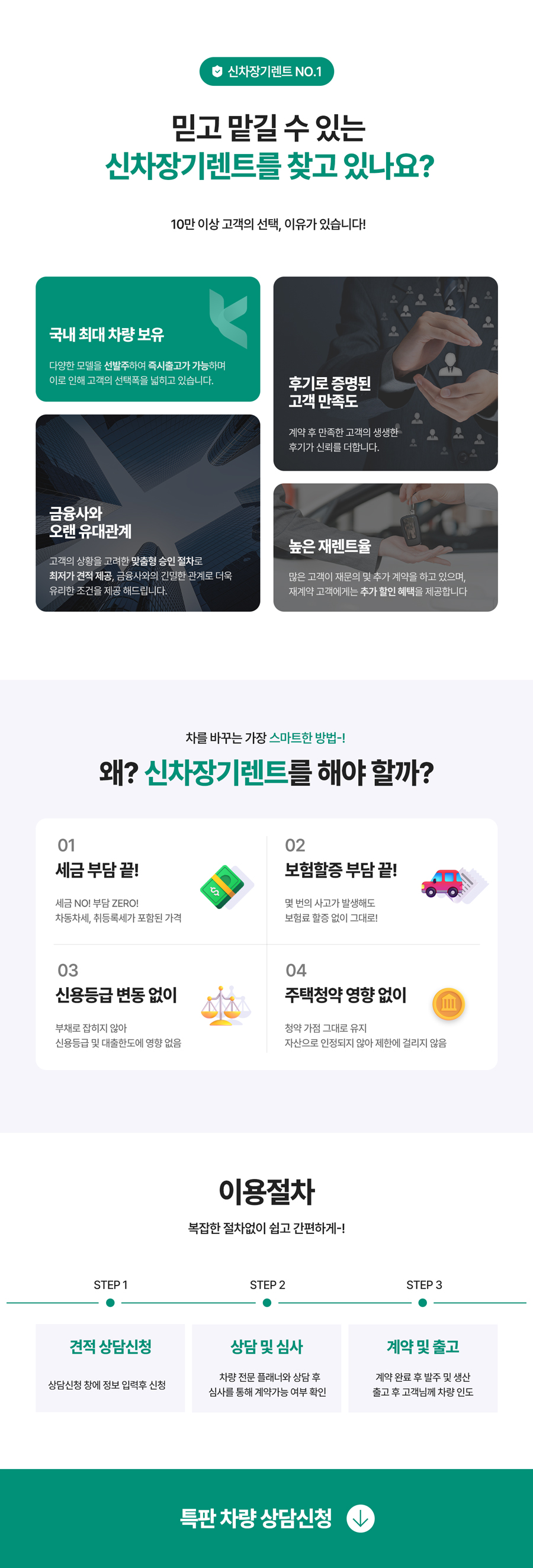 | 장기렌터카, 리스, 할부 등 견적상담 | 이름, 성별, 휴대전화번호, 생년월일, 주소, 운전면허번호, 이메일주소 | 서비스 공급 완료 및 계약 완료시로부터 5년 |