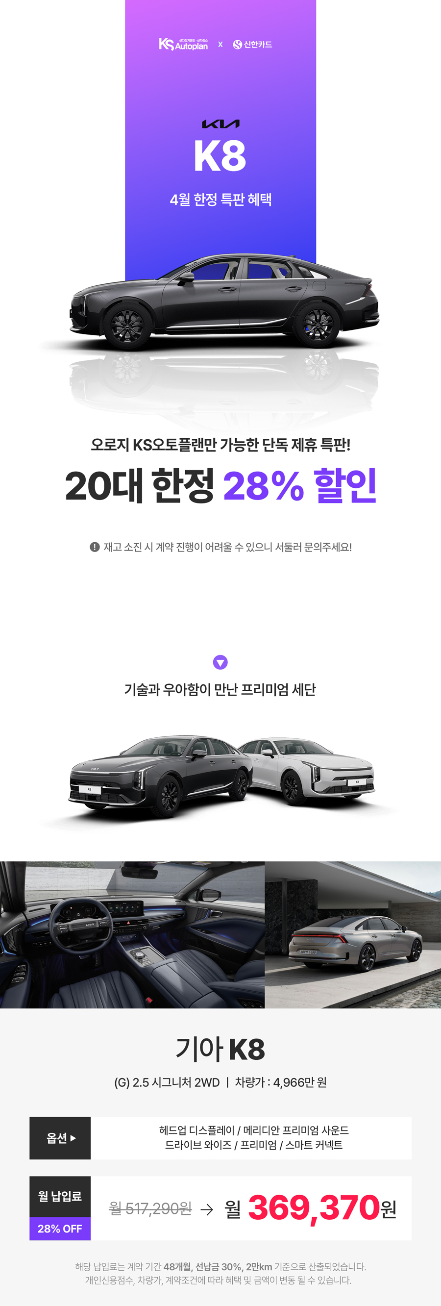 | 주식회사 케이에스오토플랜 장기대여 견적신청, 견적회신 및 상담, 장기대여 계약의 체결/이행/관리 | 이름, 성별, 휴대전화번호, 생년월일, 주소, 운전면허번호, 이메일주소 | 서비스 공급 완료 및 계약 완료시로부터 5년 |