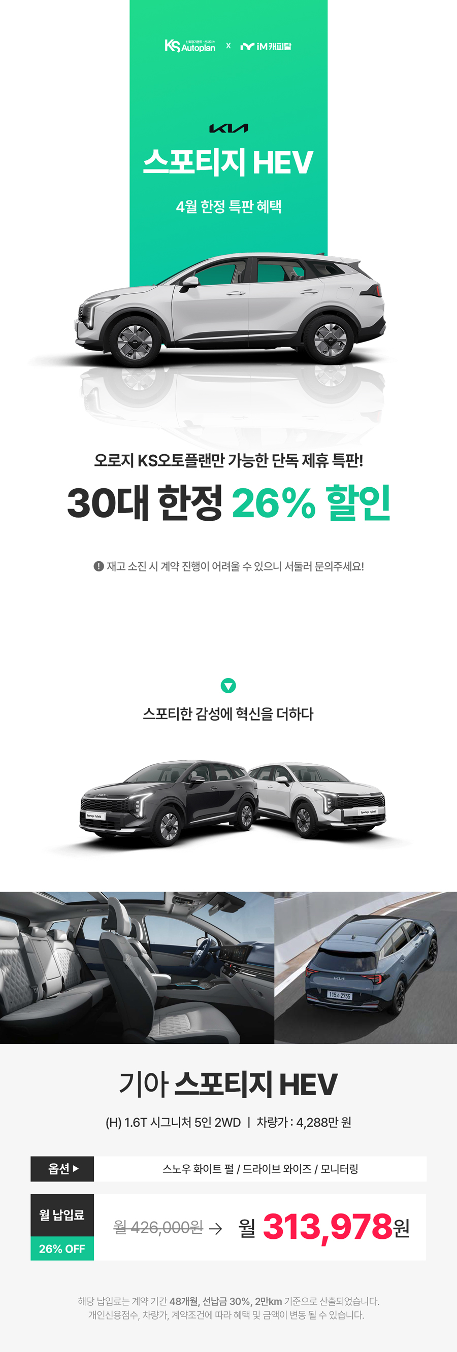 [기아 스포티지 HEV] KS오토플랜 X iM캐피탈 제휴 특판