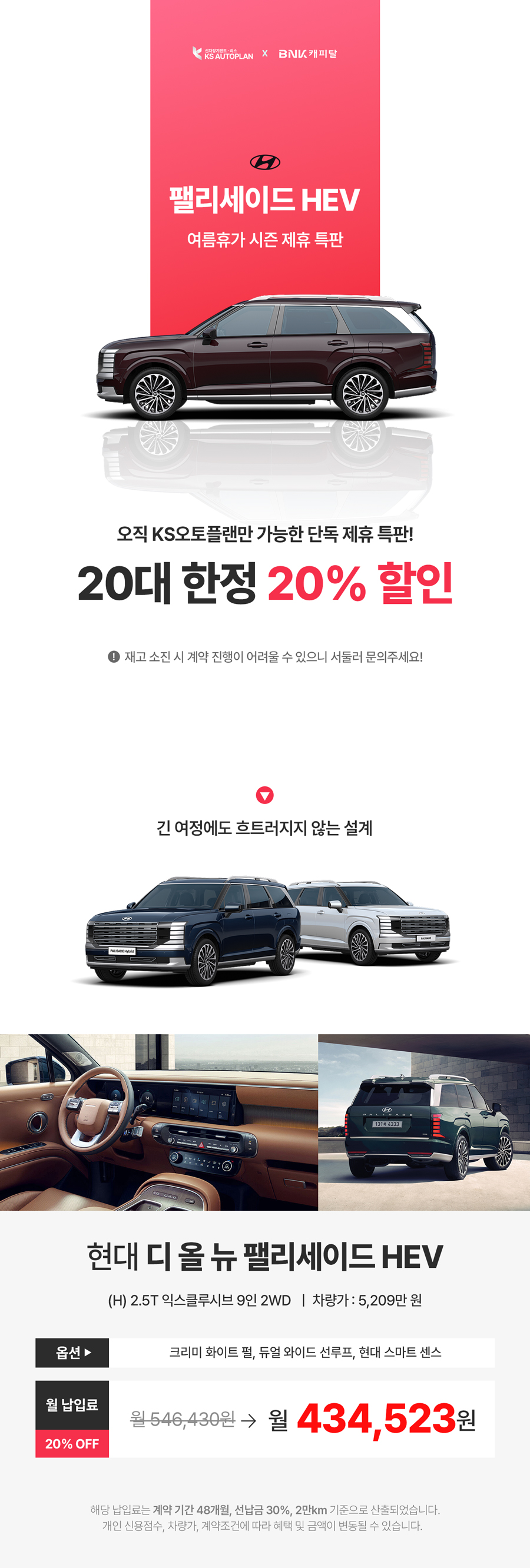 [현대 팰리세이드 HEV] KS오토플랜 X BNK캐피탈 제휴 특판