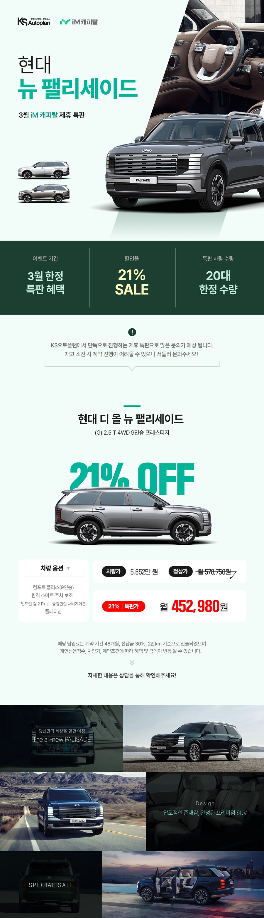 [현대 뉴 팰리세이드] KS오토플랜 X iM캐피탈 제휴 특판