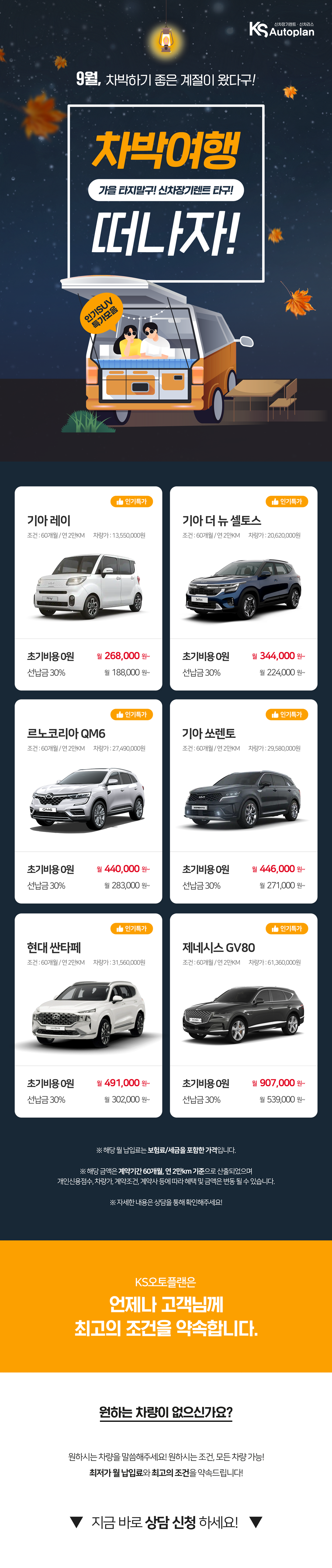 인기SUV 특가모음! 9월, 차박여행 떠나자!